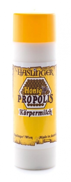 Propolis Honig Körpermilch wird nach alten Rezepten mit Propolis, echtem Bienenhonig und Lecithin hergestellt. Die Haut bleibt dadurch weich und geschmeidig. Zieht schnell ein und fettet nicht.