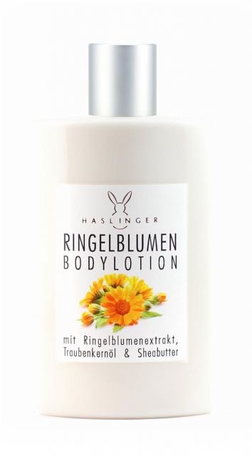 Haslinger Ringelblumen Bodylotion enthält natürlichen Ringelblumenextrakt, der für seine beruhigende Eigenschaft bekannt ist. Die Ringelblumen Bodylotion wird mit Traubenkernöl, Sheabutter und Lecithin hergestellt und versorgt empfindliche Haut mit hochwertigen Lipiden und Feuchtigkeit. Sie hinterlässt en weiches und geschmeidiges Hautgefühl, zieht rasch ein und fettet nicht.