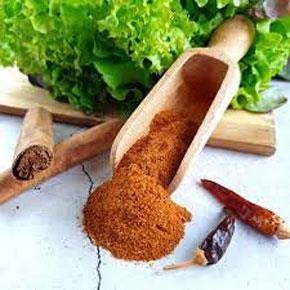 Gewürze (Paprika, Zimt, Knoblauch, Ingwer, Koriander, Kurkuma, Chili), Speisesalz, Zucker,