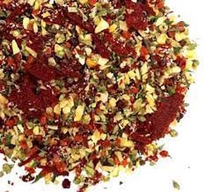 Tomatenpulver, Knoblauch, Pfeffer, Zwiebel, Knoblauch, Zitronenschalen, Chili, Habanero-Chili.