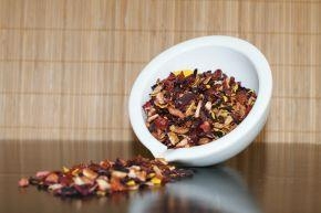 Hibiskusblüten, Hagebuttenschalen, Apfelstücke, Orangenschalen, Sonnenblumenblüten, Aroma.