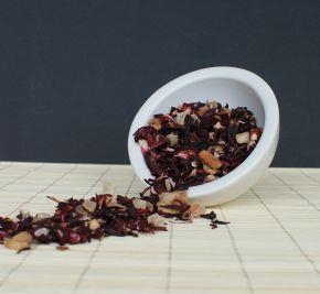 Hibiskusblüten, Apfelstücke, Papayastücke, Ananasstücke, Bananenstücke, Kokosflocken.