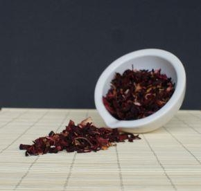 Hibiskusblüten, Apfelstücke, Hagebuttenschalen, Cranberry.