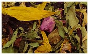 Hibiskusblüten, Verbenenblätter, Lindenblüten, Rosenknospen, Malvenblüten blau, Katzenpfötchenblüten, Orangenblüten, Ringelblumenblüten, Sonnenblumenblüten.