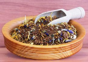 Roibusch, Aprikose, Malbenblüten blau, Ringelblumenblüten, Aroma.
